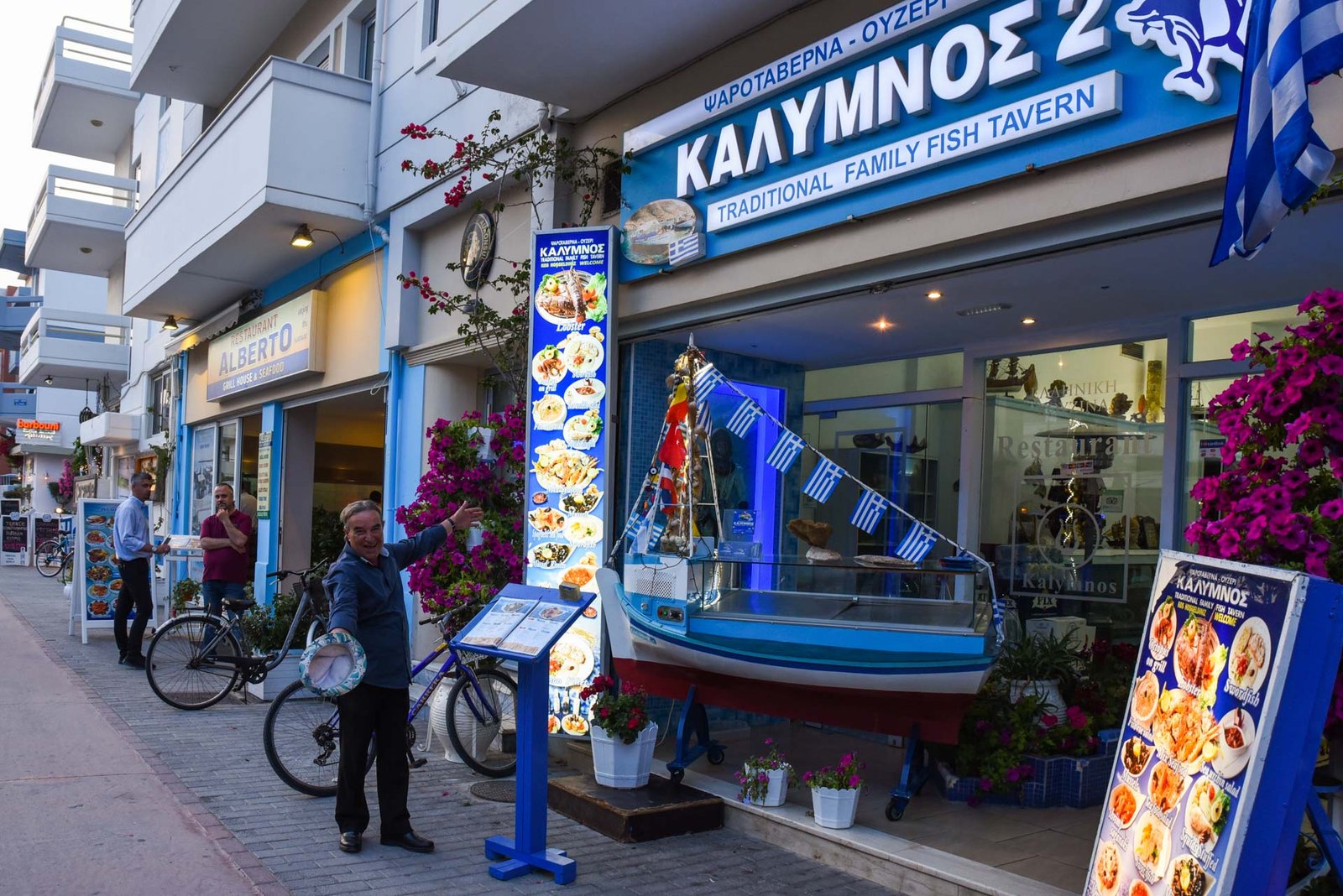 Greek authenticity at its best! Kalymnos Restaurant was founded in 1997 by Eleni who came from the island of Kalymnos. The most famous fish restaurant on Kos island, known for its fresh, homemade delicious seafood dishes, as well as the unique evenings with live Greek music and the authentic entertainment that will fill you with food, dance and joy! The decoration and the character of Kalymnos restaurant, create an idyllic, picturesque setting, unique in Kos Town, right on the beach! The fresh, homemade recipes of Mama Eleni have created fanatic and repeat visitors to our Restaurant, making it a gastronomical landmark throughout the island of Kos.